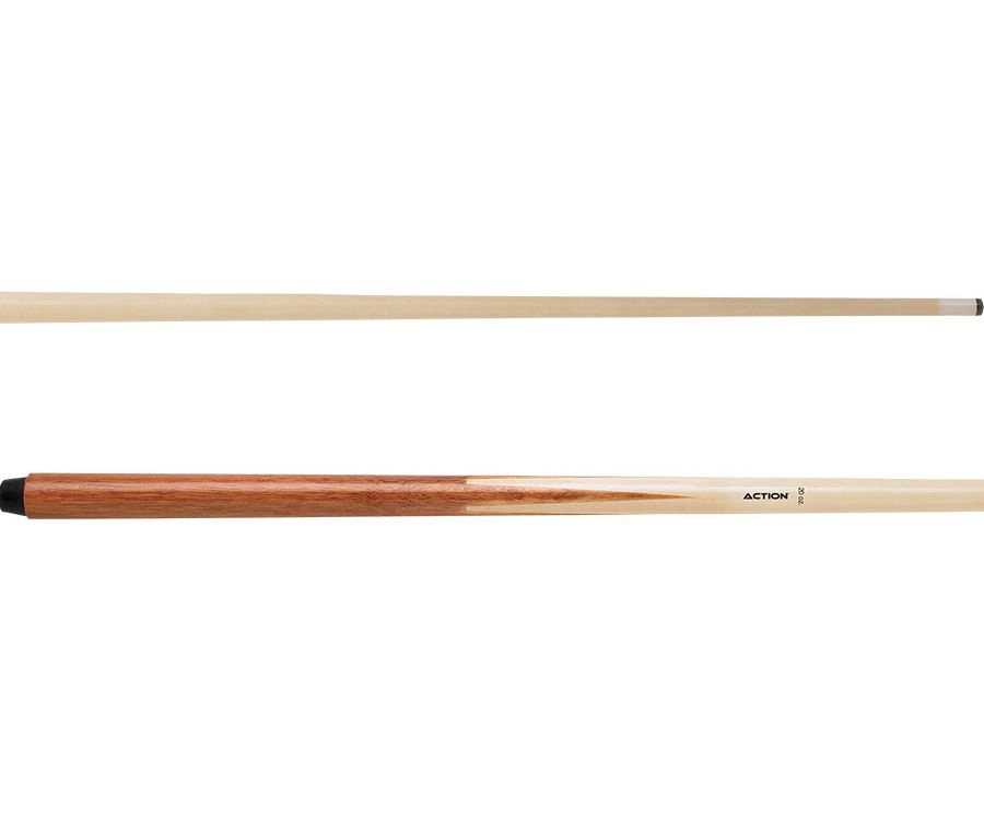 The Action One Piece 57-inch house pool cue is made with Russian maple. This cue utilizes a fiber ferrule, a 13mm tip and pro taper and is available in 18-21 ounce weight options.
