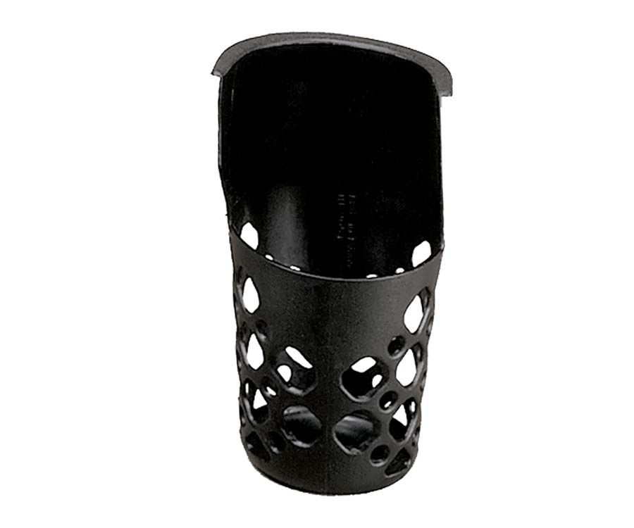 These plastic pockets for your pool table have a more structured and solid design. This sturdy design is softened up with the series of circular holes that web the pockets allowing you to see inside to confirm their capacity. Not compatible with Brunswick tables.